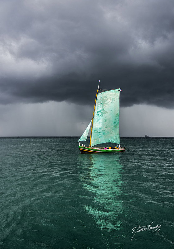 Nilton: Minha mãe falava há cinquenta anos atrás – inclusive, está rolando isso de novo – sobre o poder do pensamento positivo. É acreditar e ir conferir. Faço sempre, nem titubeio. Aquela outra foto do saveiro, mais uma vez foi assim: subi, peguei o helicóptero por minha conta; de repente, o vento vem, sopra e parece que surgem desenhos atrás que jamais imaginei. Acaba sendo uma coisa mágica, que me deixa encantado.